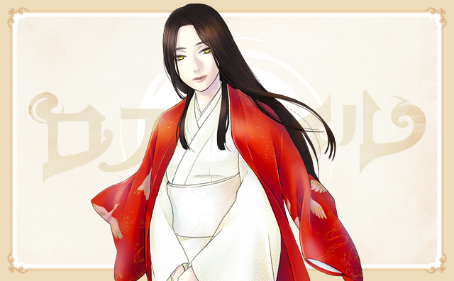 琥珀色の虹彩、切れ長の目。腰迄の垂らし髪。黒髪は潮焼けして少し赤みがかっている。概ね、白い小袖の上に緋の小袖を羽織る。微笑む表情は何処か薄暗い。儚げで、生きながら幽霊の様な佇まい。(FS有)